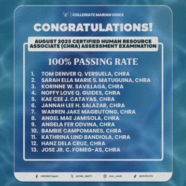 The fourth-year Bachelor of Arts in Psychology students of St. Mary’s College of Tagum, Inc., have achieved a 100% passing rate in the recent Certified Human Resource Associate Assessment Examination.
